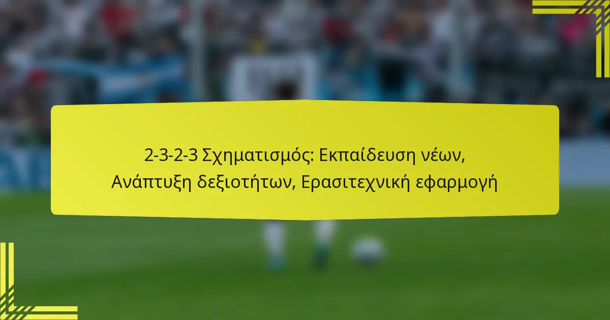 Η διάταξη 2-3-2-3 είναι μια ευέλικτη ρύθμιση που μπορεί να ενισχύσει την ομαδική εργασία και την ανάπτυξη δεξιοτήτων μεταξύ των νεαρών παικτών. Οι ερασιτέχνες προπονητές μπορούν να εφαρμόσουν αποτελεσματικά αυτή τη διάταξη εστιάζοντας σε σαφείς ρόλους, επικοινωνία και σταδιακή εισαγωγή στις τακτικές έννοιες που εμπλέκονται.